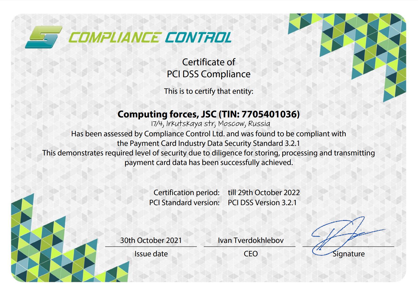 Сертификат соответствия требованиям стандарта PCI DSS версии 3.1