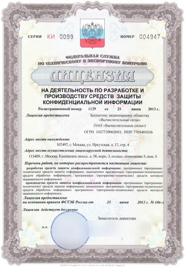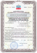 Лицензия на деятельность по разработке и производству средств защиты конфиденциальной информации.