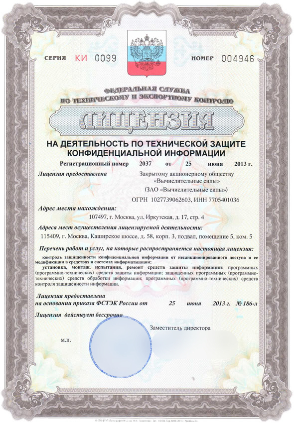 Лицензия на деятельность по технической защите конфиденциальной информации.
