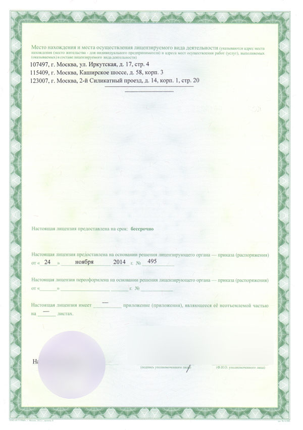 Место нахождения: г.Москва, ул.Иркутская, д.17, стр.4